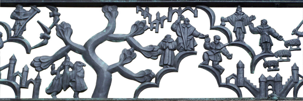 Afbeelding: in het balkon van het stadhuis van Enschede, is door Van Hall in 1934, de stadsrecht-verlening door bisschop Jan II van Diest uitgebeeld.